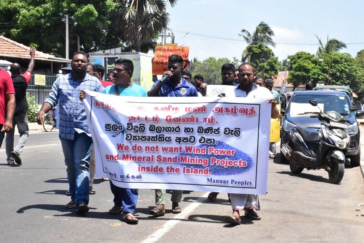 மன்னாரில் புதிதாக முன்னெடுக்கப்படவுள்ள காற்றாலை மின் கோபுரம் அமைத்தல் மற்றும் கனிய மணல் அகழ்வு ஆகியவை முழுமையாக நிறுத்தும் வரை தமது போராட்டம் தொடரும் என போராட்டத்தில் ஈடுபட்டவர்கள் தெரிவித்தனர்.