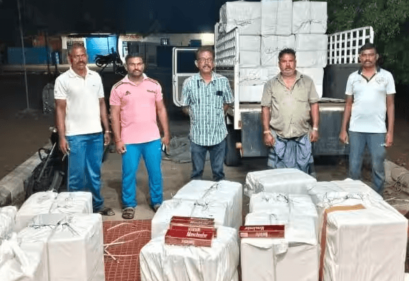அதிவேகமாக சென்ற சிறிய லொறியொன்றை நிறுத்தி பொலிஸார் சோதனை செய்தனர். அதில், 32 மூட்டைகளில் வெளிநாட்டு சிகரெட் மூட்டைகள் இருந்துள்ளன. ஆறு கோடி இந்திய ரூபாய் பெறுமதியான வெளிநாட்டு சிகரெட் பைக்கட் மூட்டைகளை மரைன் பொலிஸார் பறிமுதல் செய்தனர்.