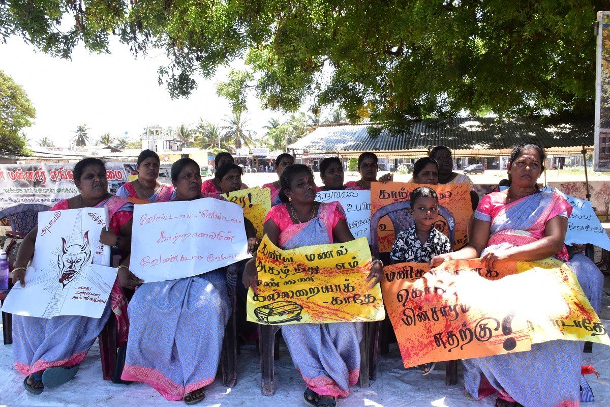 மன்னாரில் காற்றாலை கோபுரங்கள் அமைத்தல் மற்றும் கனிய மணல் அகழ்வு ஆகியவற்றுக்கு எதிராக முன்னெடுக்கப்பட்டு வரும் கவனயீர்ப்பு போராட்டம் இன்றைய தினம் வியாழன் 26 ஆவது நாளாகவும் சுழற்சி முறையில் முன்னெடுக்கப்பட்டு வருகின்றது. குறித்த போராட்டத்திற்கு ஆதரவு தெரிவிக்கும் வகையில் விடத்தல் தீவு மாதர் சங்க பிரதிநிதிகள் கலந்து கொண்டு ஆதரவை வழங்கியுள்ளனர்.