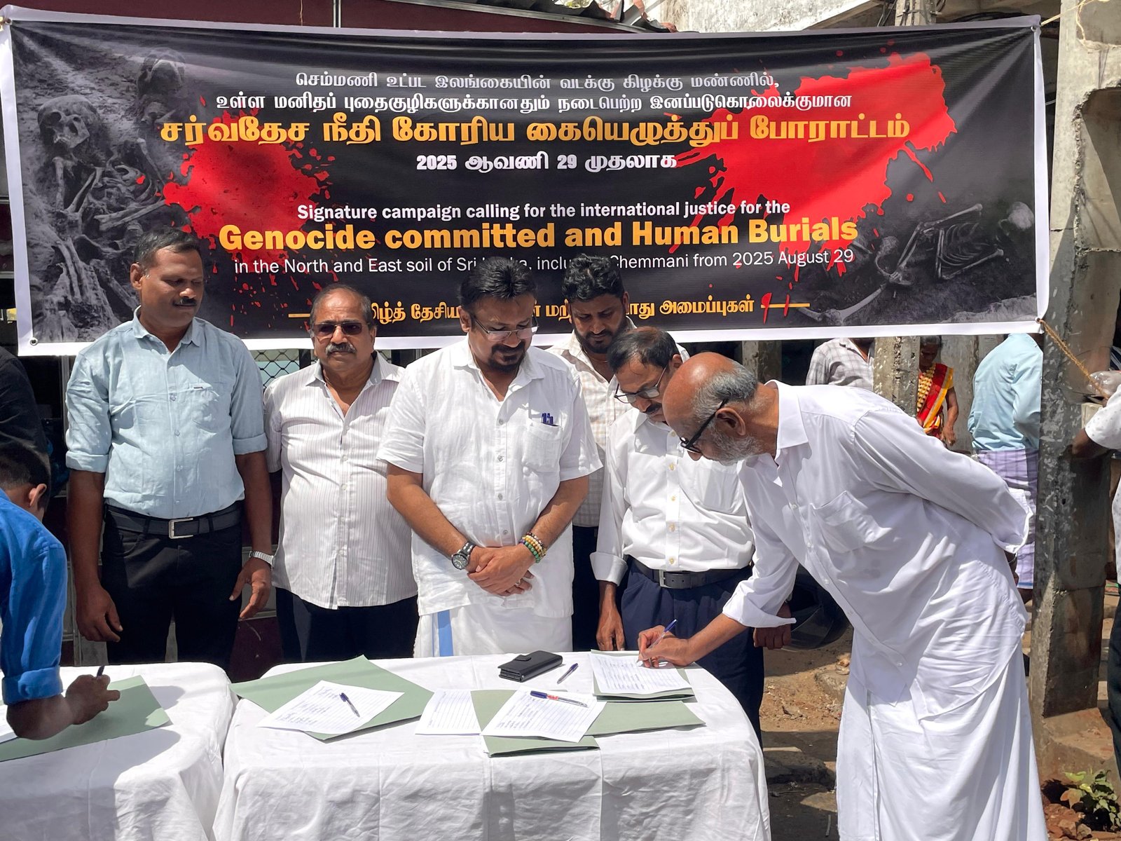 செம்மணி உட்பட இலங்கையின் வடக்கு கிழக்கில் உள்ள மனிதப் புதைகுழிகளுக்கானதும், நடைபெற்ற இனப்படுகொலைக்குமான “சர்வதேச நீதி கோரிய கையெழுத்துப் போராட்டம் இன்று ஆரம்பமானது.