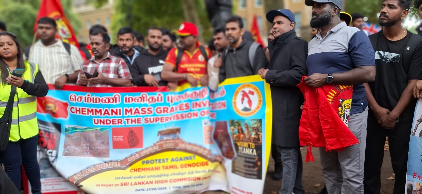 வலிந்து காணாமல் ஆக்கப்பட்ட தமிழர்களுக்காக நீதி கோரியும் செம்மணி படுகொலைகளுக்கு நீதி வேண்டியும்நேற்று - வலிந்து காணாமலாக்கப்பட்டோருக்கான சர்வதேச தினத்தில் லண்டனில் பிரித்தானிய பிரதமர் அலுவலகம் முன்பு கண்டன ஆர்ப்பாட்டம் ஒன்று இடம்பெற்றது.
