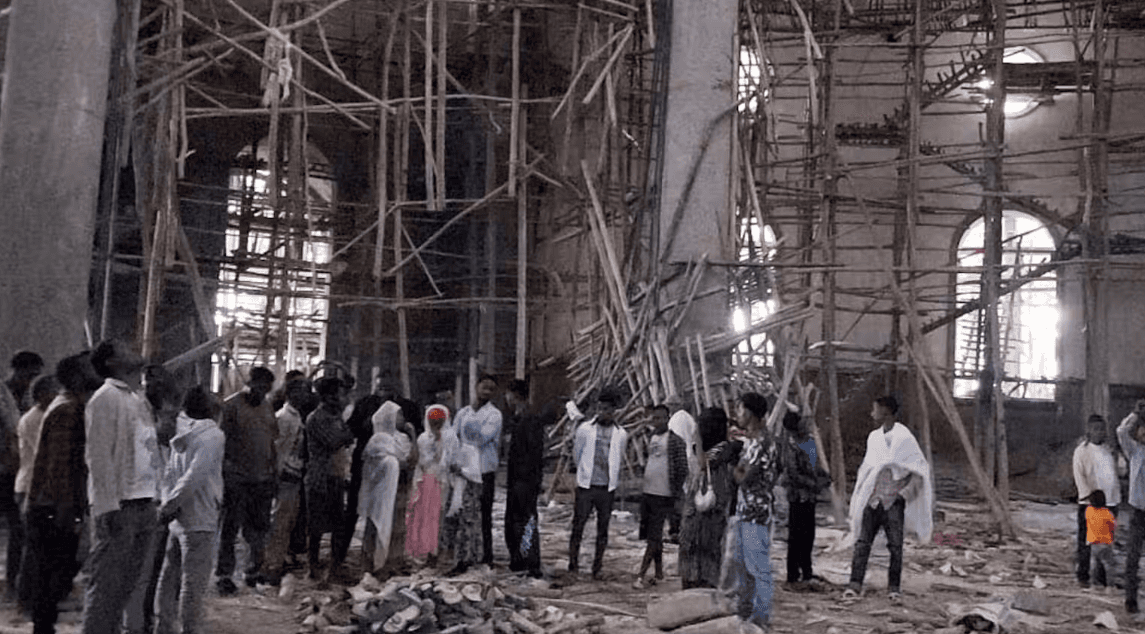 கிழக்கு ஆபிரிக்க நாடான எத்தியோப்பியாவின் அம்ஹாரா பிராந்தியத்தில் அமைந்துள்ள ஒரு தேவாலயத்தில்  மத நிகழ்வு நடைபெற்றுக் கொண்டிருந்தபோது, மறுசீரமைப்புக்காக அமைக்கப்பட்டிருந்த தற்காலிக மரச் சாரம் திடீரென இடிந்து விழுந்ததில், 36 பேர் உயிரிழந்துள்ளதுடன் 200க்கும் மேற்பட்டோர் காயமடைந்துள்ளனர்.