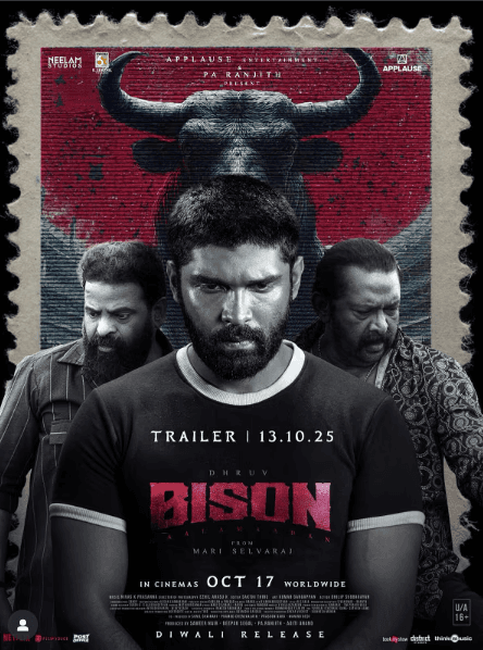 இந்நிலையில், “பைசன்” திரைப்படத்தின் ட்ரெய்லர் எதிர்வரும் 13ஆம் திகதி வெளியாகும் என போஸ்டர் ஒன்றின் மூலம் படக்குழு உத்தியோகபூர்வமாக அறிவித்துள்ளது.