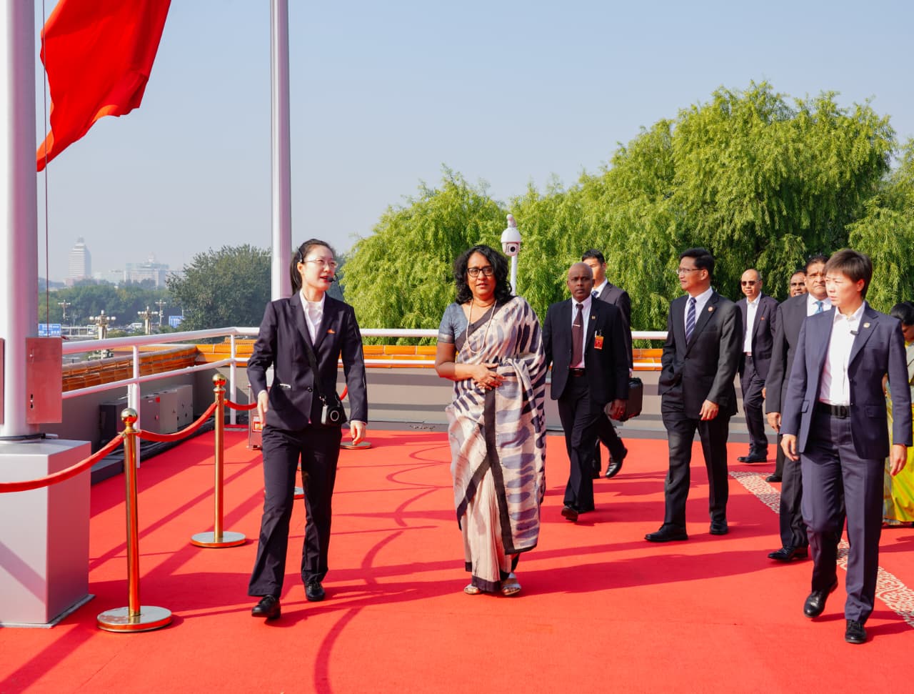 பிரதமர் கலாநிதி ஹரிணி அமரசூரிய, இன்று ஒக்டோபர் 14 ஆம் திகதி பீஜிங்கில் அமைந்திருக்கும் தியானன்மென் சதுக்கத்தைப் பார்வையிட்டதுடன், அங்கு சீனாவின் தேசிய முக்கியத்துவம் மிக்க இரண்டு நினைவுச்சின்னங்களாகிய, மக்கள் நாயகர்களின் நினைவுச்சின்னம் (Monument to the People’s Heroes) மற்றும் மாவோ சேதுங் நினைவுக் கூடம் (Mao Zedong Memorial Hall) ஆகியவற்றிற்கு அஞ்சலி செலுத்தினார்.