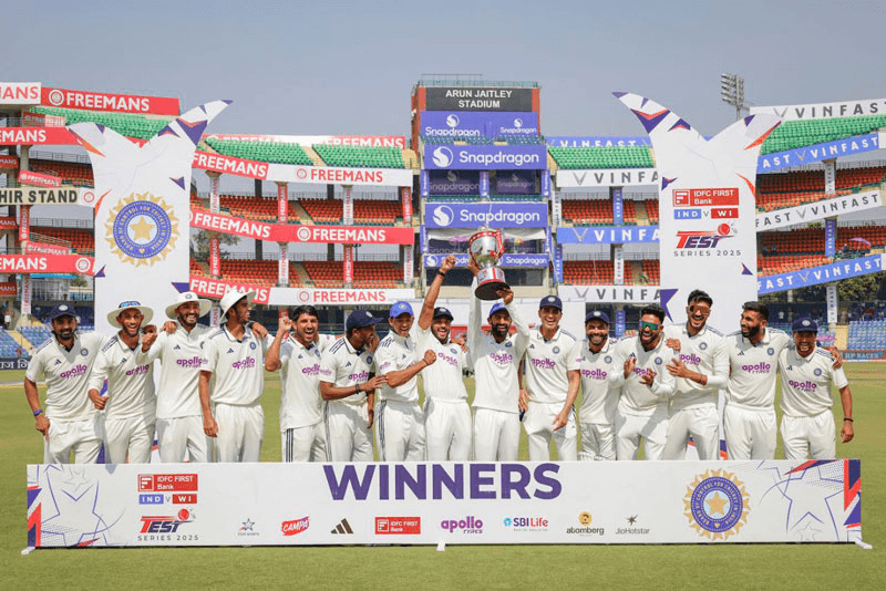 இந்தியா – மேற்கிந்திய தீவுகளுக்கிடையிலான இரண்டு போட்டிகள் கொண்ட இத்தொடரின் முதலாவது போட்டியை ஏற்கெனவே வென்ற இந்தியா, டெல்லியில் ஆரம்பித்த இரண்டாவது போட்டியையும் இந்திய அணி வென்றுள்ளது. இந்நிலையில், 2-0 என்ற ரீதியில் இந்திய அணி தொடரைக் கைப்பற்றியுள்ளது.