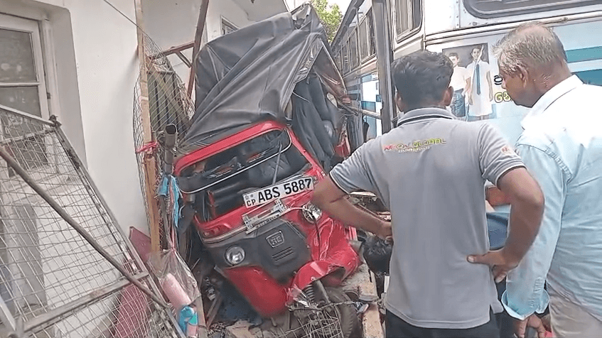 அத்துடன், நிறுத்தி வைக்கப்பட்டிருந்த முச்சக்கர வண்டியொன்றையும் மோதி தள்ளி முன்சென்று, வீடொன்றின் மதில் மீது மோதி நின்றுள்ளது.