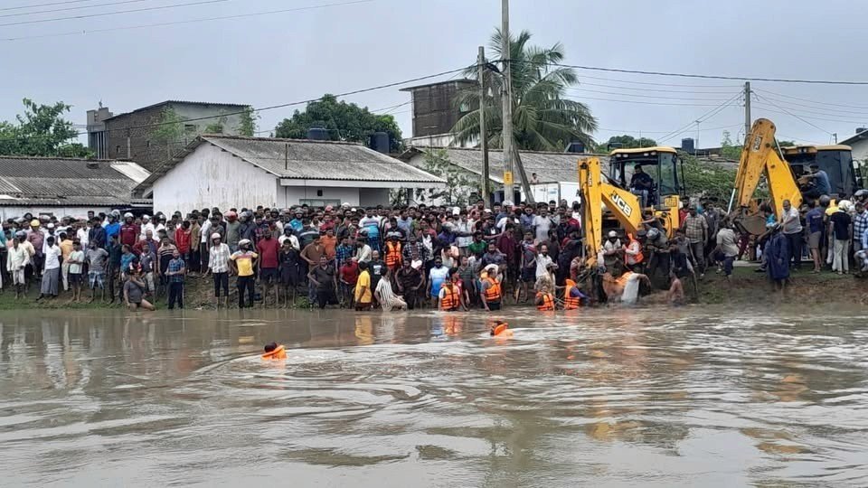 அம்பாறை - சாய்ந்தமருது பகுதியில் வெள்ள நீர் நிரம்பிய கால்வாயில் கார் ஒன்று கவிழ்ந்து