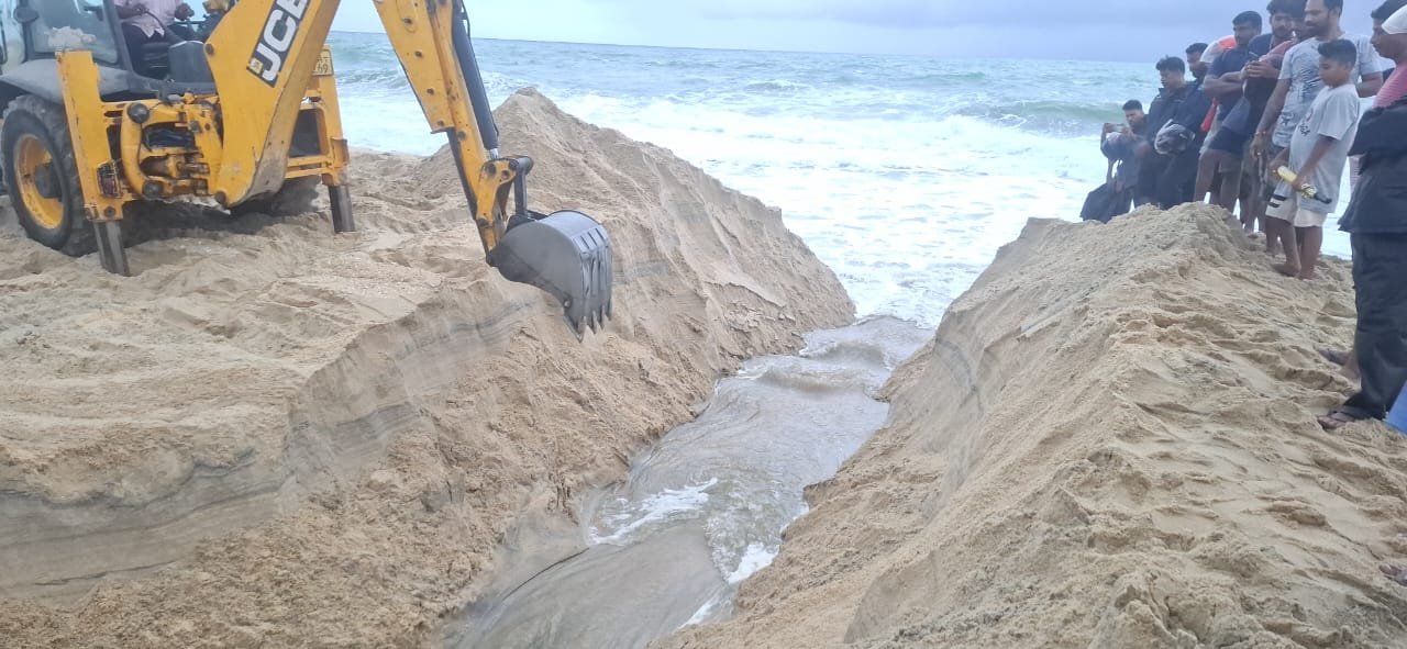 மட்டக்களப்பில் தொடர்ந்தும் பலத்த மழை வெள்ளம் காரணமாக பெரியகல்லாறு முகத்துவாரம் (ஆற்றுவாய்) வெட்டப்பட்டுள்ளது.