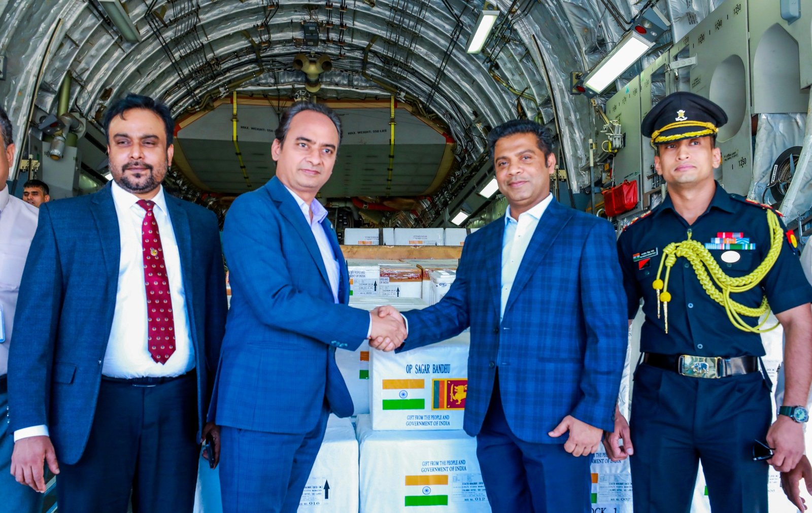 இந்த மருத்துவக் குழுவை இந்தியாவிற்கு அழைத்துச் செல்ல வந்த இந்திய விமானப்படையின் C-17 குளோப்மாஸ்டர் விமானம் மூலம் 10 டொன் மருந்துகள் மற்றும் 15 டொன் உலர் உணவுப் பொருட்கள் அடங்கிய நிவாரணப் பொருட்கள் இலங்கைக்கு கொண்டு வரப்பட்டன.