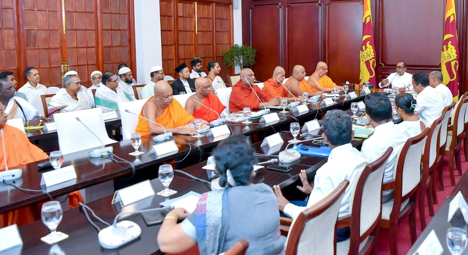 ஜனாதிபதி அலுவலகத்தில் நேற்று பிற்பகல் புத்தசாசன, சமய மற்றும் கலாசார அலுவல்கள் அமைச்சர் கலாநிதி ஹினிதும சுனில் செனெவி தலைமையில் மூன்று நிகாயாக்களின் மகா சங்கத்தினர் மற்றும் ஏனைய மதத் தலைவர்களின் பங்கேற்புடன் நடைபெற்றது.