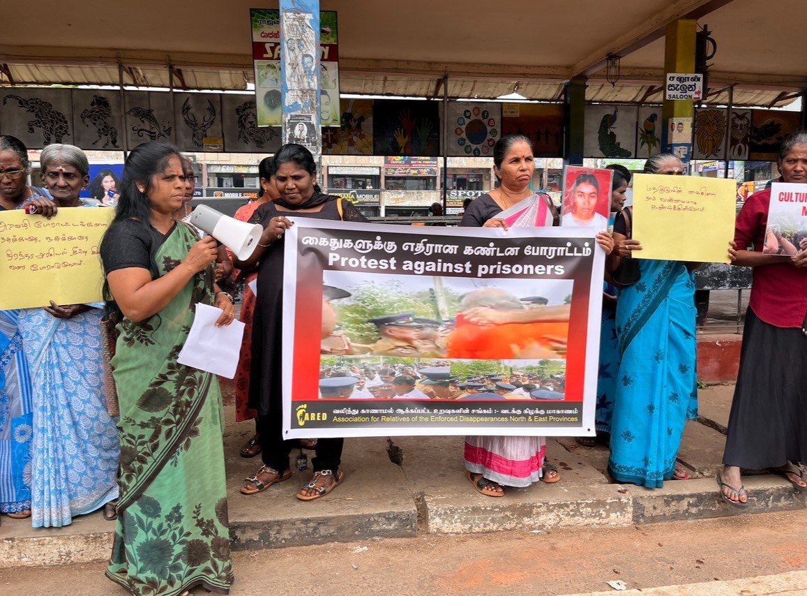 வவுனியாவில் வலிந்து காணாமல் ஆக்கப்பட்ட உறவுகளின் சங்கத்தினரால் பழைய பேருந்து நிலையத்திற்கு முன்பாக கண்டன ஆர்ப்பாட்டம் ஒன்று முன்னெடுக்கப்பட்டது.