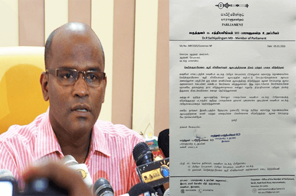 வடக்கு ஆளுநருக்கு சத்தியலிங்கம் எம்.பி கடிதம்