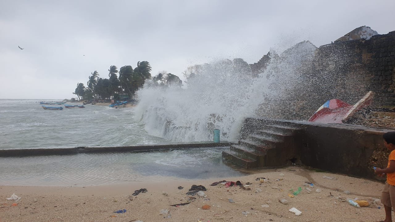 குறிப்பாக வடமராட்சி பகுதி கடல் மிக கொந்தளிப்பான நிலையில் காணப்படுகிறது. மூர்க்கம் கடற்கரை பகுதியில் காணப்பட்ட சில கட்டுமானங்கள் கடல் அலையால் சேதமடைந்துள்ளன.