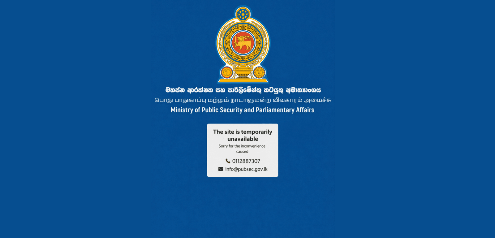 பொதுமக்கள் பாதுகாப்பு மற்றும் பாராளுமன்ற விவகாரங்கள் அமைச்சின் இணையத்தளத்தைப் பயன்படுத்துவது தற்காலிகமாக இடைநிறுத்தப்பட்டுள்ளதாகத் தெரிவிக்கப்பட்டுள்ளது.