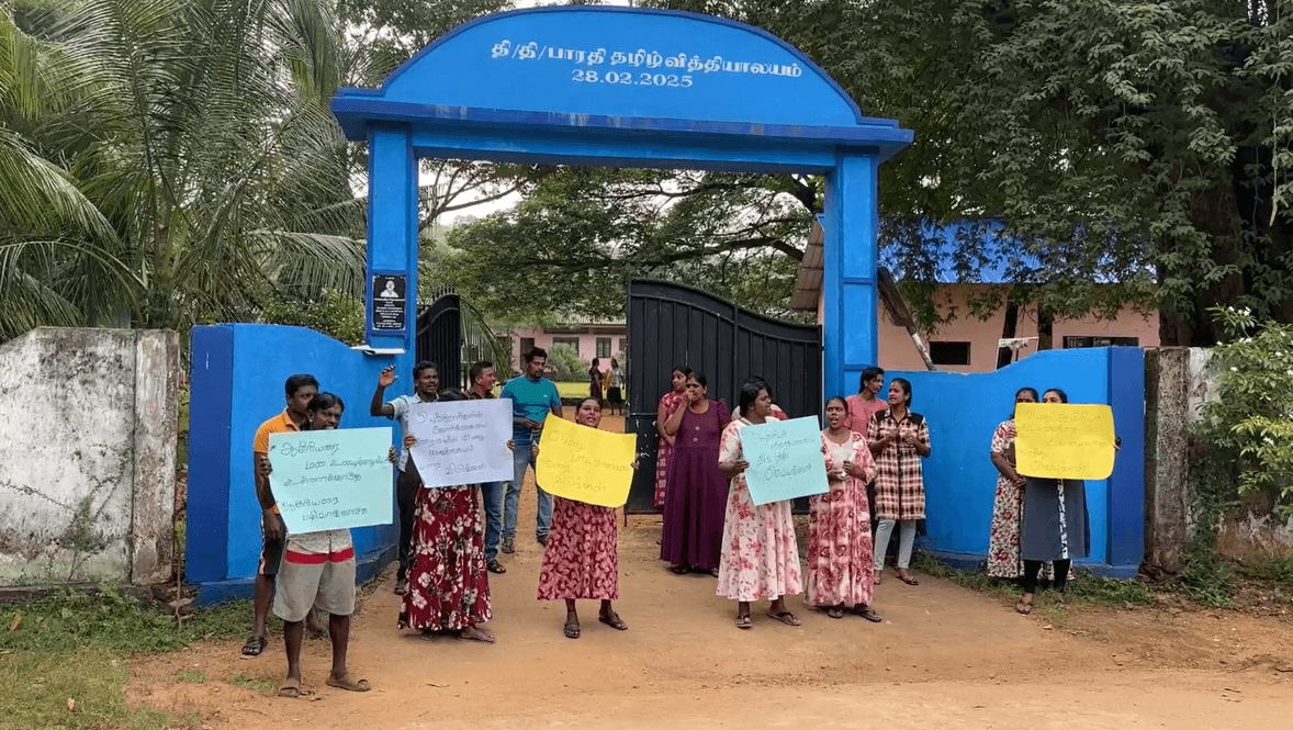 திருகோணமலை பாரதி தமிழ் வித்தியாலயத்திற்கு முன்பாக ஆர்ப்பாட்டம்
