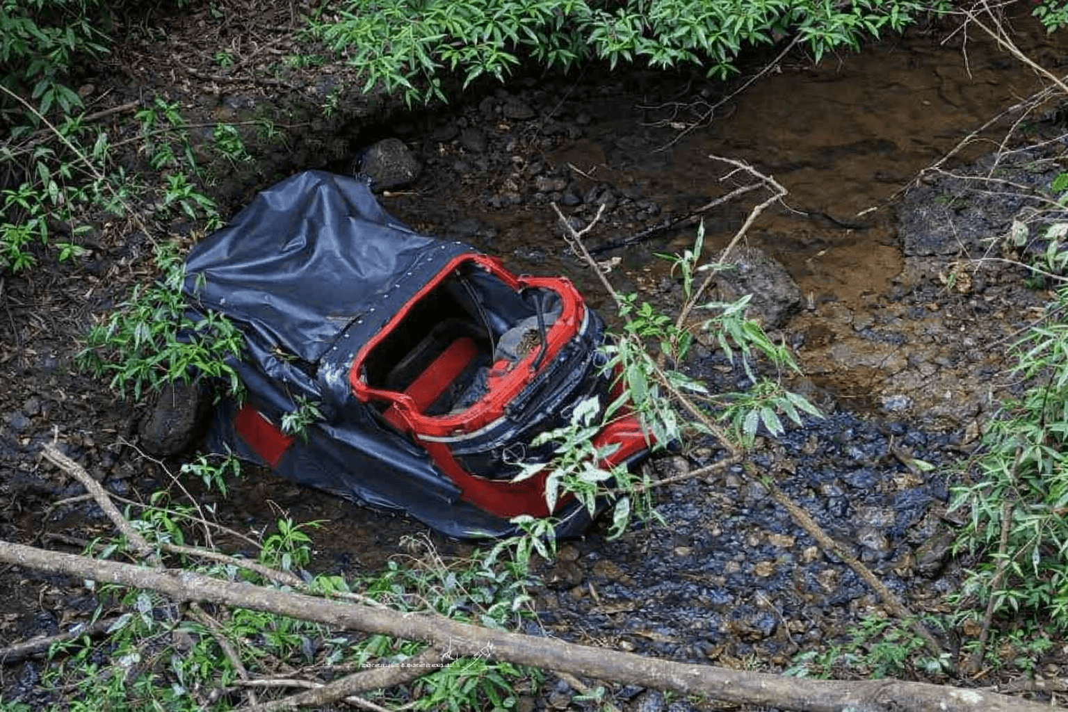 பள்ளத்தில் கவிழ்ந்து நொறுங்கிய முச்சக்கர வண்டி