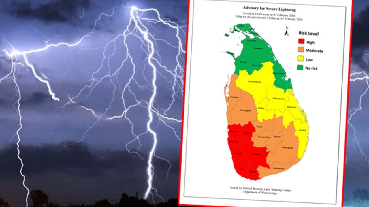 வளிமண்டலவியல் திணைக்களத்தின் இயற்கை அனர்த்தம் தொடர்பான முன்னெச்சரிக்கை மையம், இன்று (07) நண்பகல் 12.00 மணியளவில் கடும் மின்னல் தாக்கம் தொடர்பான ‘செம்மஞ்சள்’  நிற எச்சரிக்கையை விடுத்துள்ளது.