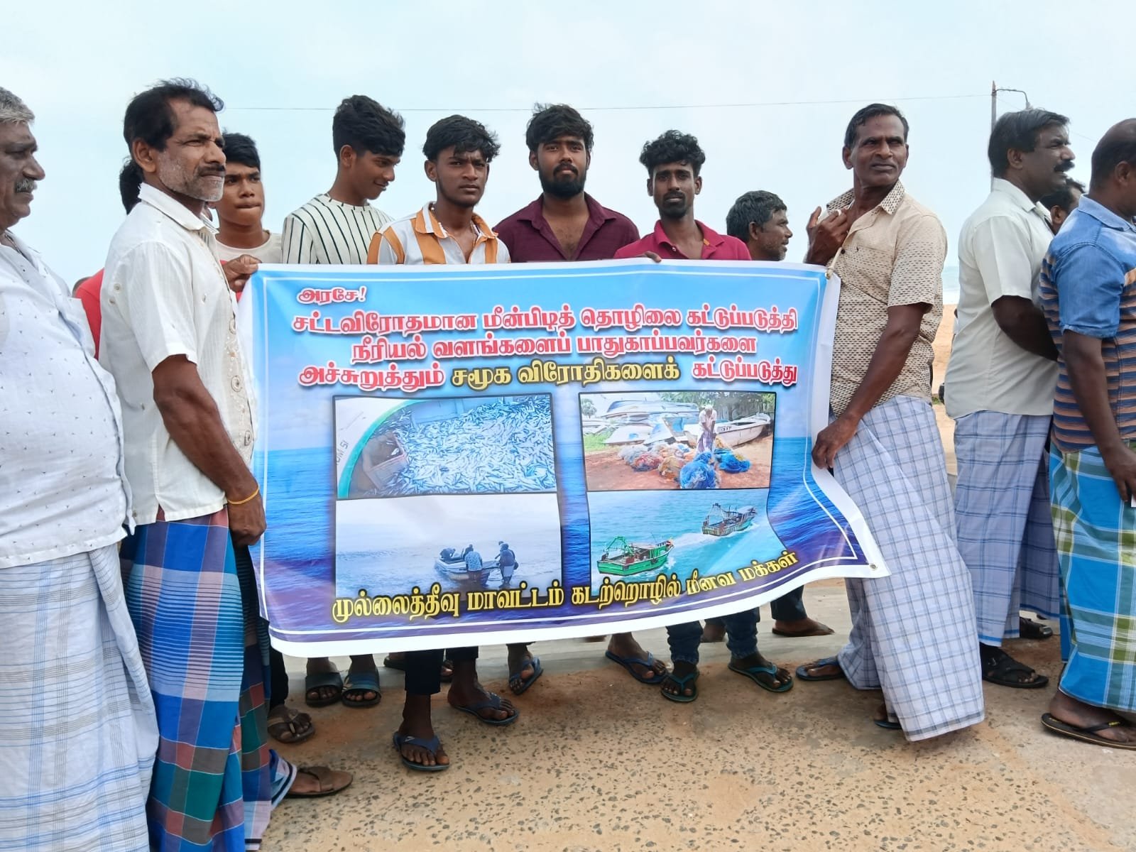 சட்டவிரோத மீன்டியினை தடைசெய்யக்கோரி முல்லைத்தீவு மீனவர்கள் போராட்டம்.