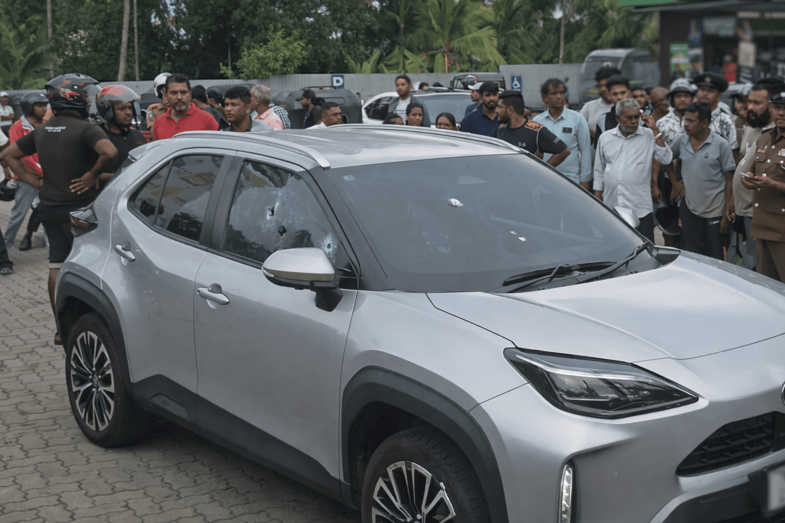 அக்குரேகொட பகுதியிலுள்ள சுப்பர் மார்க்கெட் ஒன்றின் வாகன தரிப்பிடத்தில், காரினுள் இருந்த தம்பதியினர் மீது மற்றுமொரு காரில் வந்த இரு அடையாளம் தெரியாத நபர்கள் துப்பாக்கிப் பிரயோகம் நடத்திவிட்டு தப்பிச் சென்றனர்.