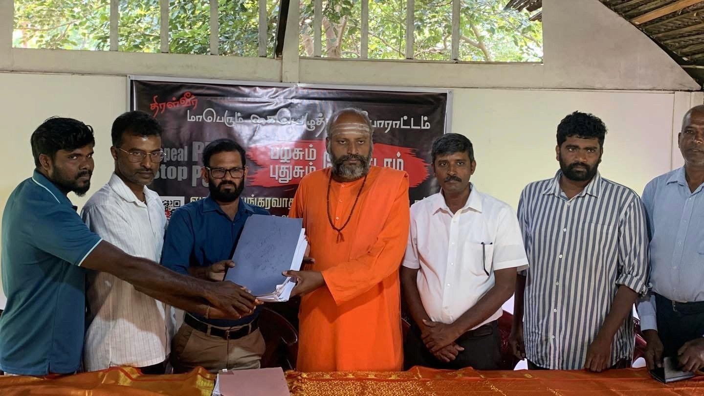 நல்லூர் சிவகுரு ஆதீனத்தில் வேலன் சுவாமியிடம் பிராந்திய சேகரிப்பாளர்களிடமிருந்து பெறப்பட்ட கையொப்பப் பட்டியல்கள் உத்தியோகபூர்வமாக ஒப்படைக்கப்பட்டன.அவை நீதி அமைச்சுக்கு அனுப்பி வைக்கப்படவுள்ளன