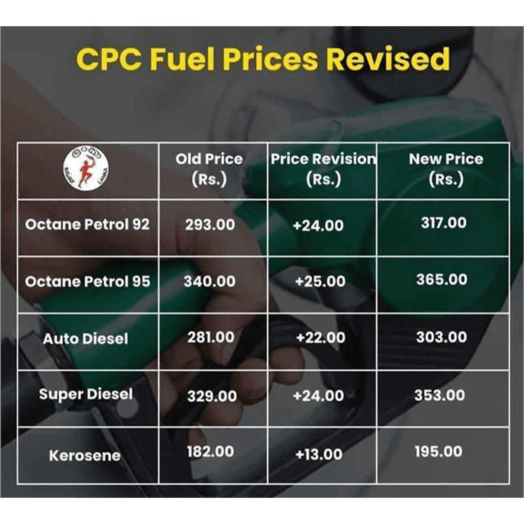 329 ரூபாயக நிலவிய லங்கா சுப்பர் டீசல் 4 ஸ்டார் யூரோ 4 இன் லீற்றர் ஒன்றின் விலை 24 ரூபாவால் அதிகரிக்கப்பட்டுள்ளதுடன் அதன் புதிய விலை 353 ரூபாவாகும்.